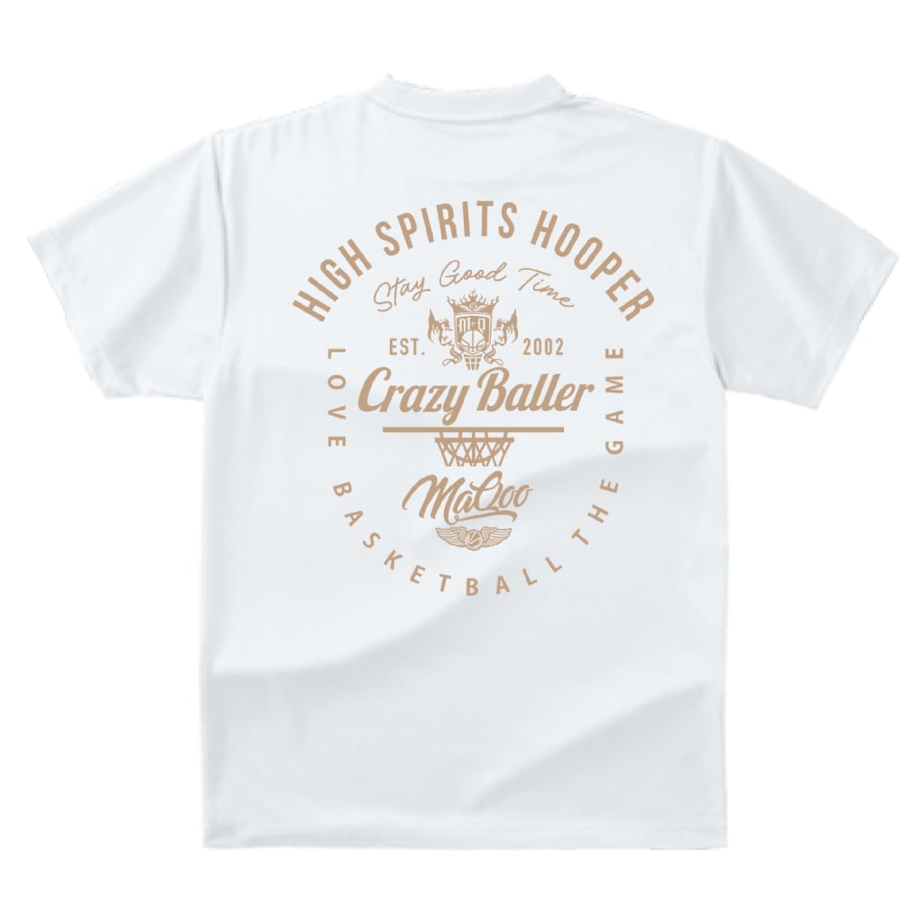 ※受注生産品 MaQoo バスケットボールTシャツ 「クレイジーボーラー」 ホワイト/ベージュ